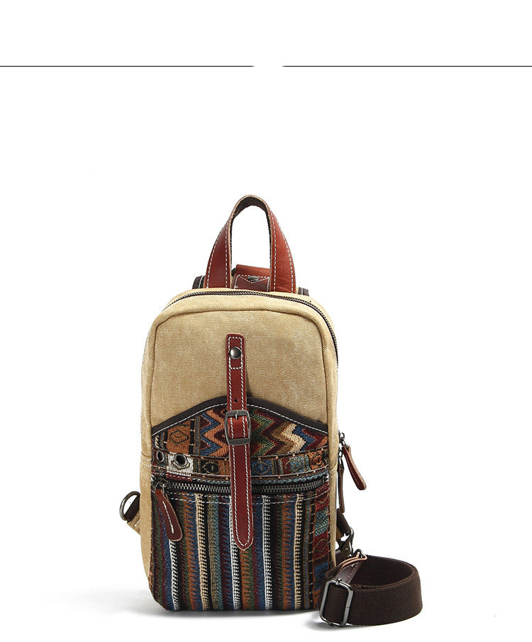 Design: Cool Canvas Leather Mens Embroidered Sling Bag Chest Bag Gray One Shoulder Backpack for Men