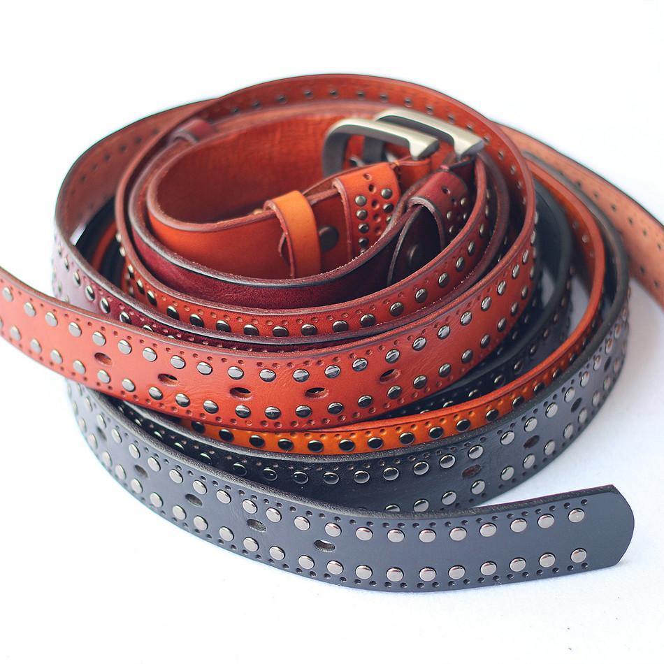 Cool Punk Rock Handmade Buckle Black Rivet Leather Mens Belts Dark Coffee Leather Belts for Men