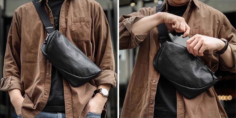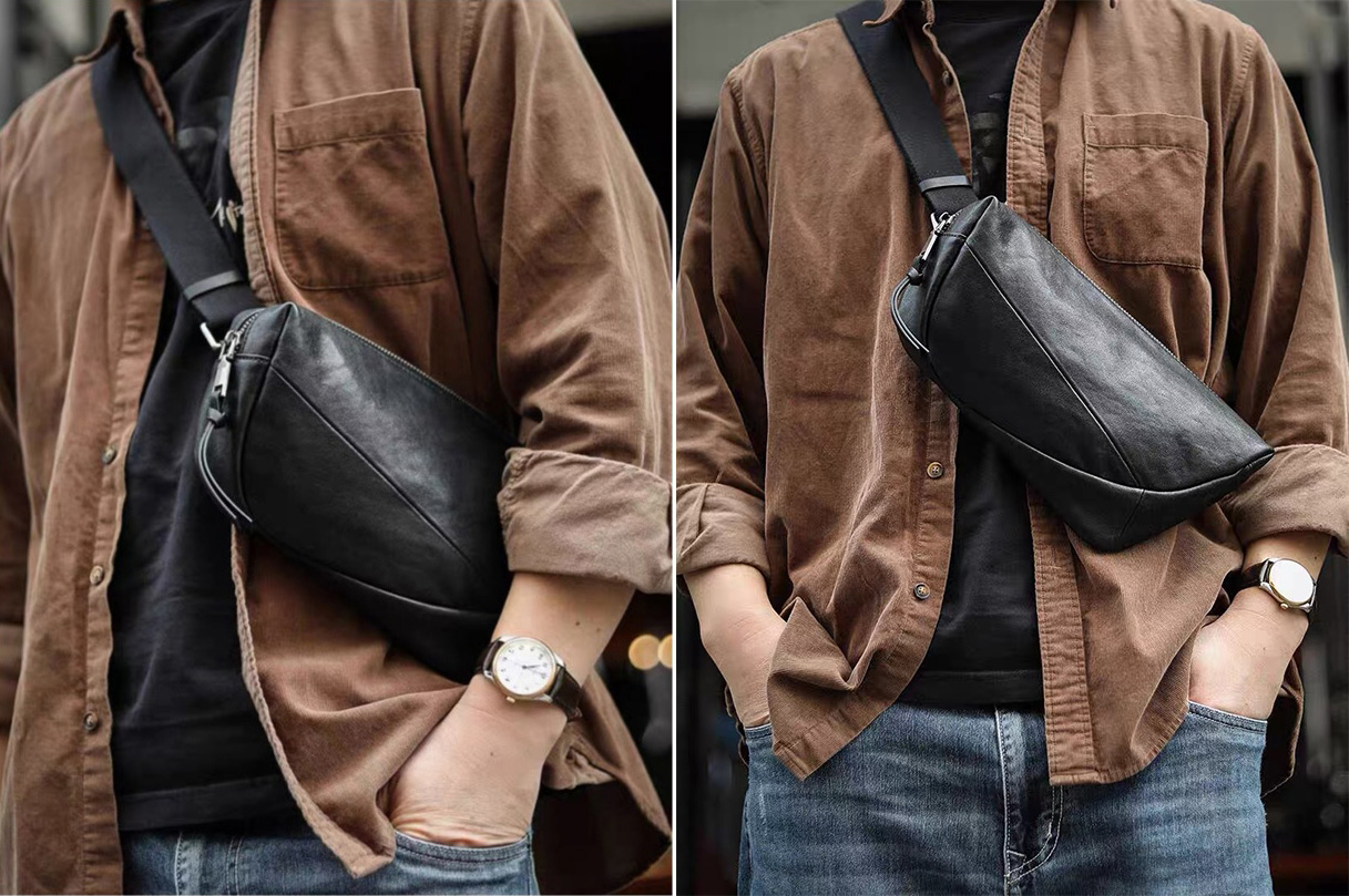 頭層牛皮小型胸前包包 2712D號