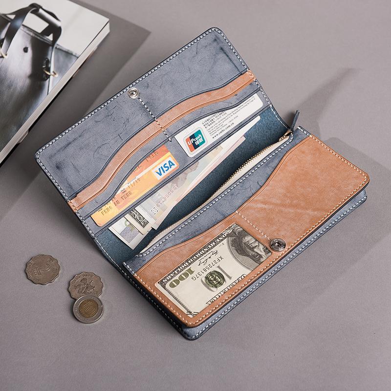 Handmade Leather Mens Clutch Wallet Cool Leather Wallet Long Phone Wallets for Men