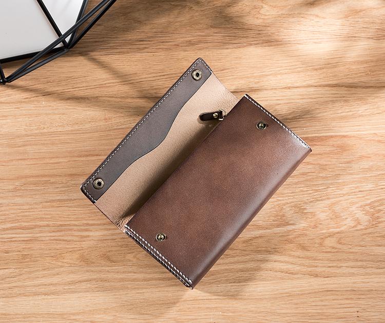 Handmade Leather Mens Clutch Wallet Cool Leather Wallet Long Phone Wallets for Men