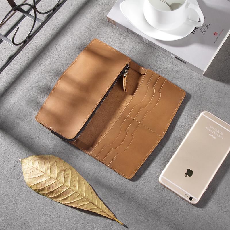 Handmade Leather Mens Clutch Wallet Cool Leather Wallet Long Phone Wallets for Men