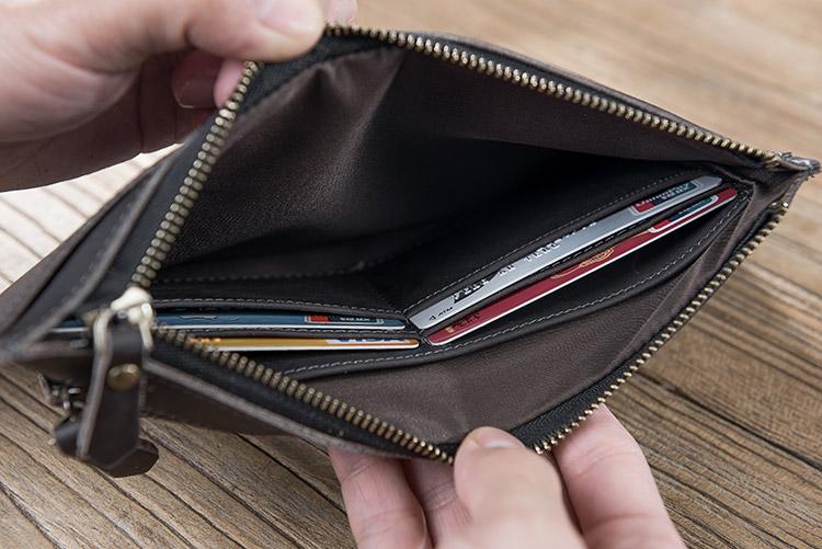 Handmade Leather Mens Clutch Wallet Cool Leather Wallet Zipper Phone Wallets for Men