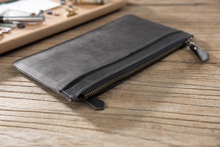 Design: Handmade Leather Mens Clutch Wallet Cool Zipper?Leather Wallet Long Phone Wallets for Men