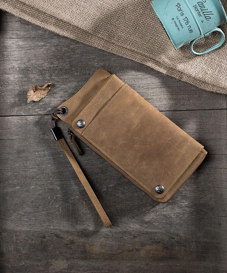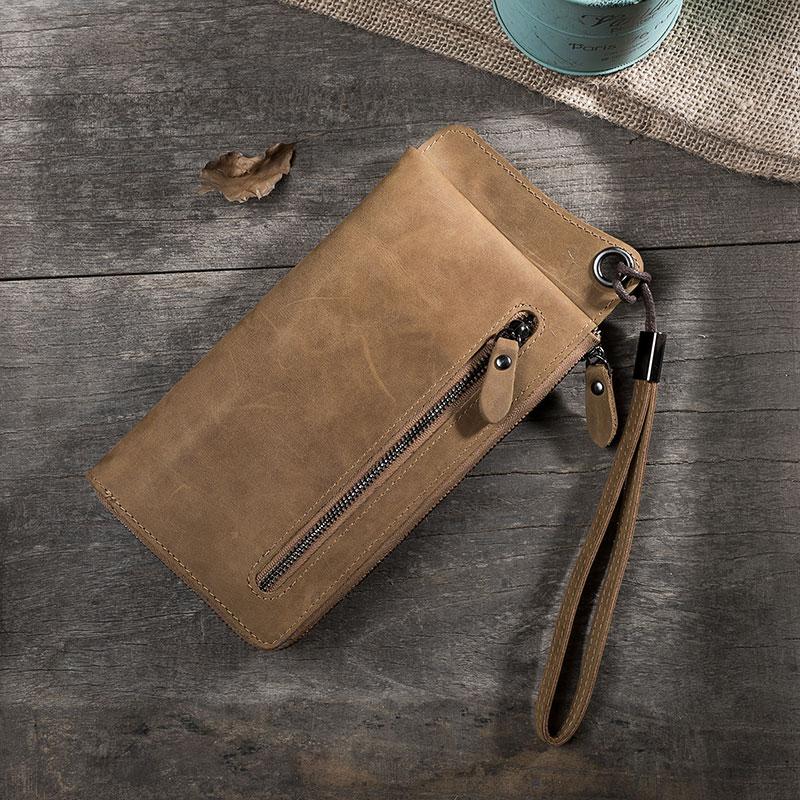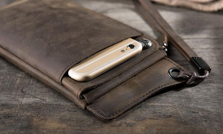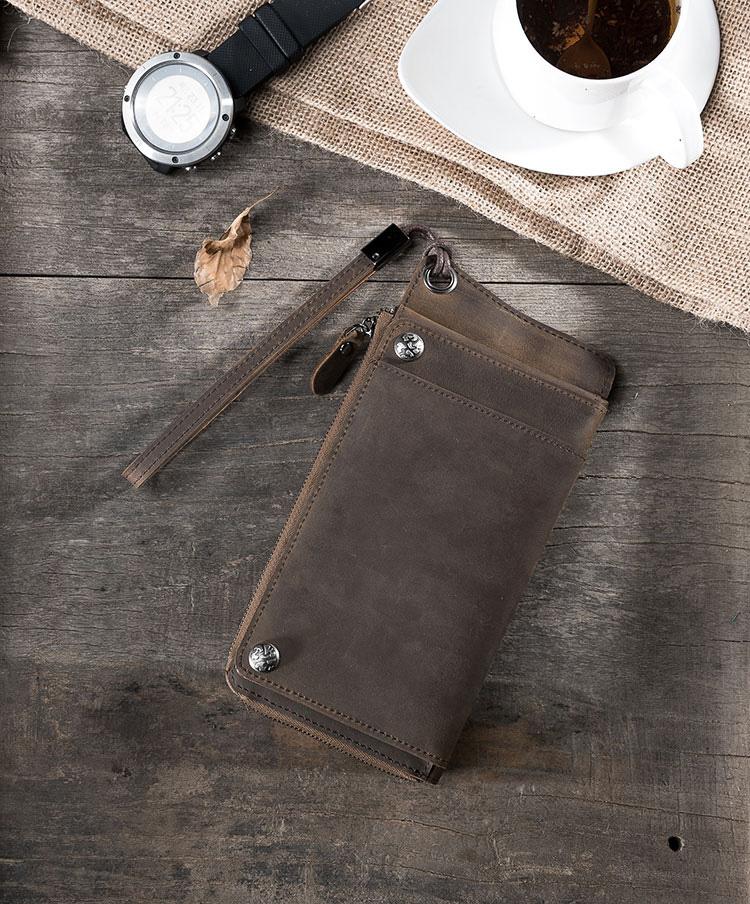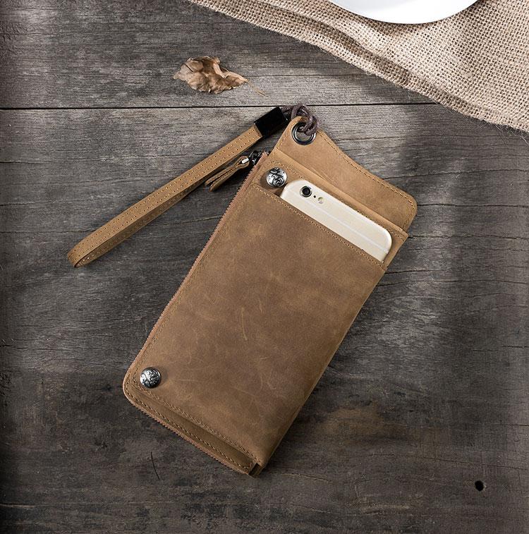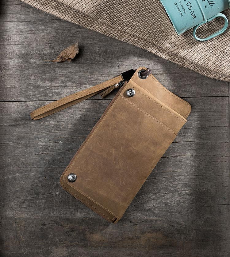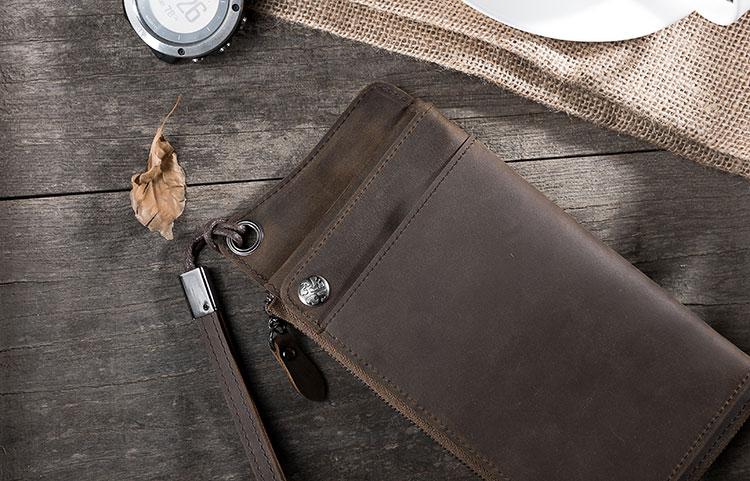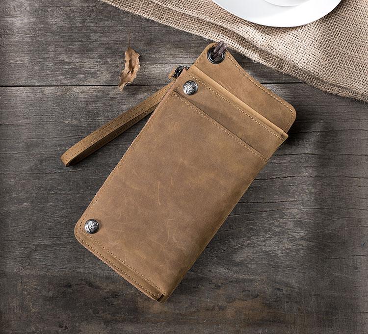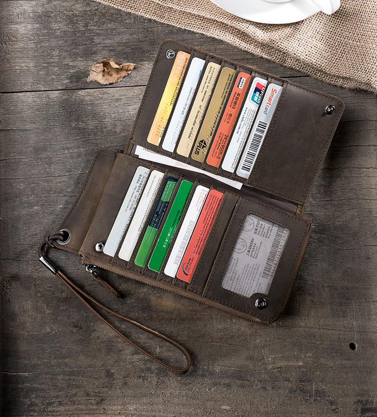 Handmade Leather Mens Cool Long Chain Wallet Phone Biker Trucker Wristlet Wallet