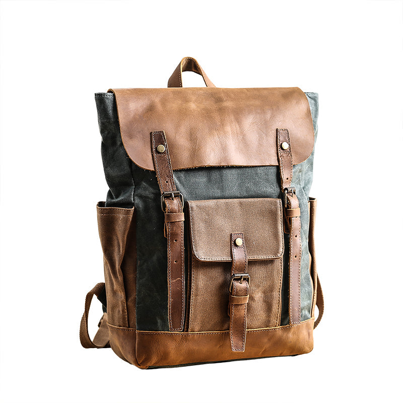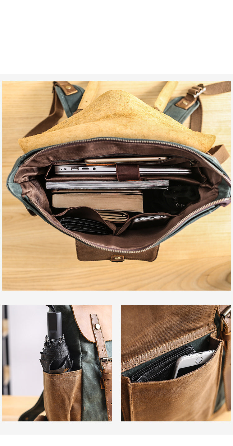 Style: Lake Green Waxed Canvas Mens Large Computer Bag College Backpack Student Bag for Men