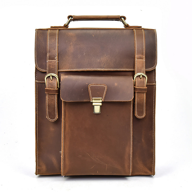 • Cool Leather Mens Briefcase Handbag Backpack Satchel Backpack Travel Backpack for Men