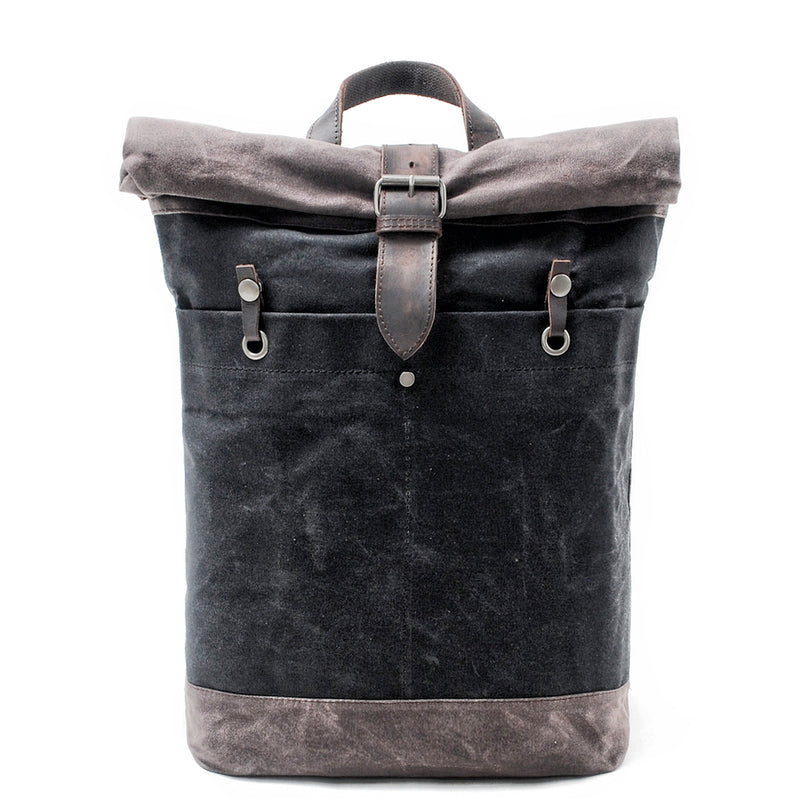 • Waxed Canvas Leather Mens College Waterproof 15'' Computer Backpack Travel Backpack Hiking Bag for Men