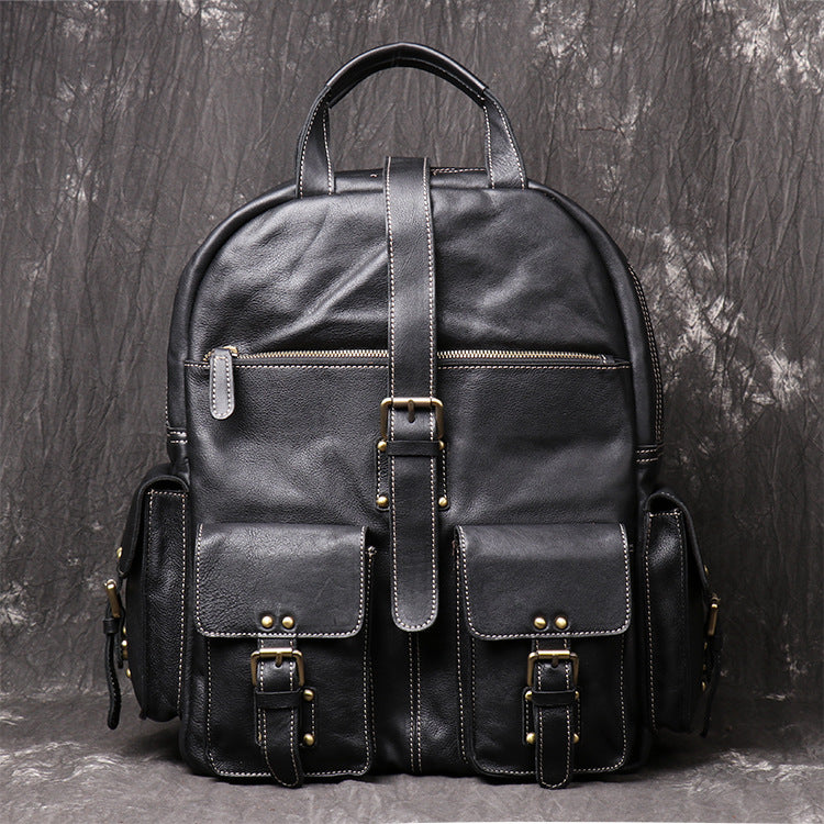 • Black Leather Mens 14inch Laptop Backpack Backpacks School Backpack Travel Backpack for Men