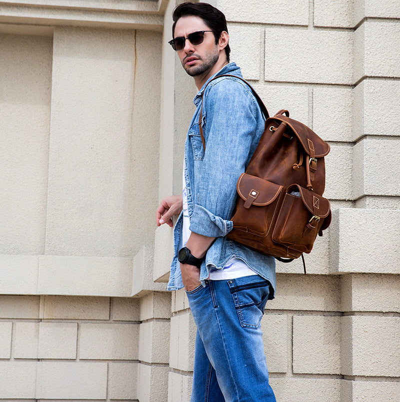 • Vintage Leather Mens 14inch Laptop Backpack Travel Backpacks School Backpacks for Men