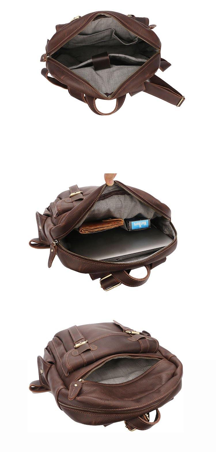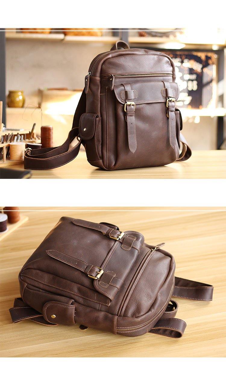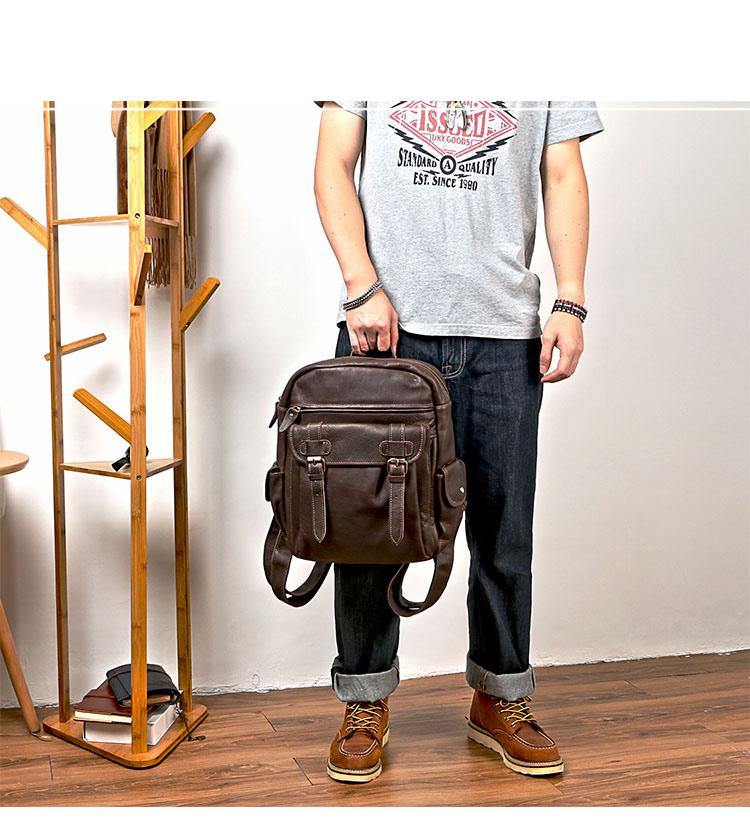 Coffee Cool Leather Mens School Backpack College Backpack 14'' Computer Backpack For Men