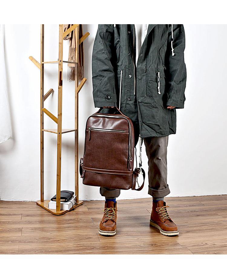 Design: Brown Cool Leather Mens Backpack College Bag Handbag Computer Bag For Men