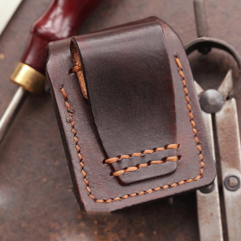 Cool Dark Brown Leather Mens Holster Zippo Lighter Case Standard Zippo Lighter Holder For Men