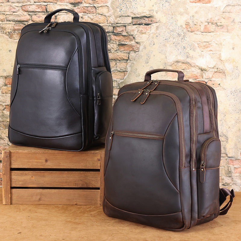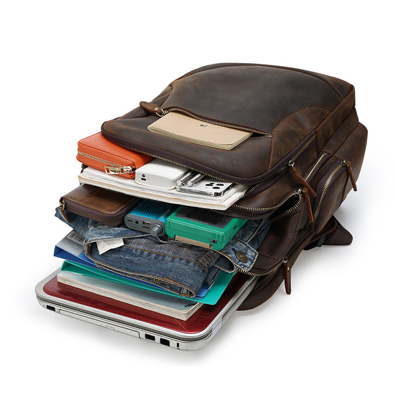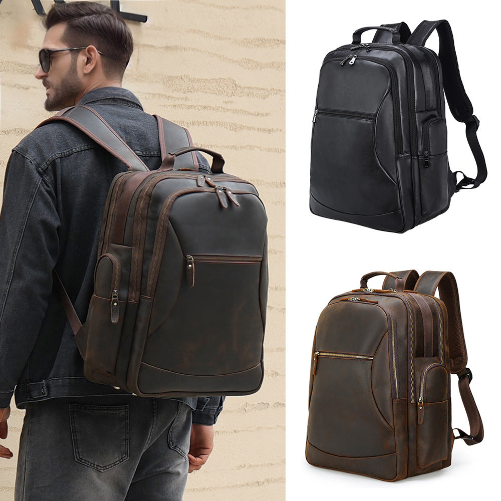 Deepkee Full-grain Leather Large Capacity Travel Cowhide Backpack #3709
