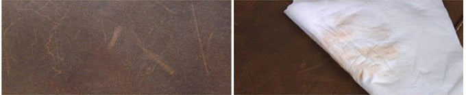 Oil impregnated leathers will be soaked in oil during the production process, and the leather will be full of oil. Therefore, please be careful not to wear light-colored clothes in the first month, so as not to soak your clothes.