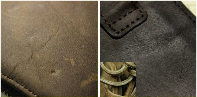 ▼The most important feature of oil impregnated leathers is its color changing effect. Scratches will disappear slowly, or if you rub your finger back and forth or lightly burn it with a lighter, the scratches will disappear quickly.