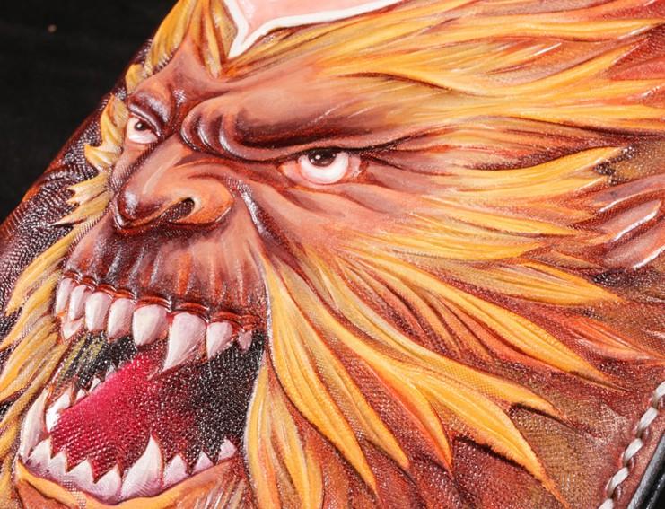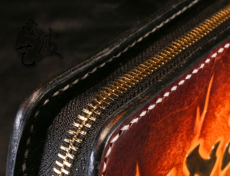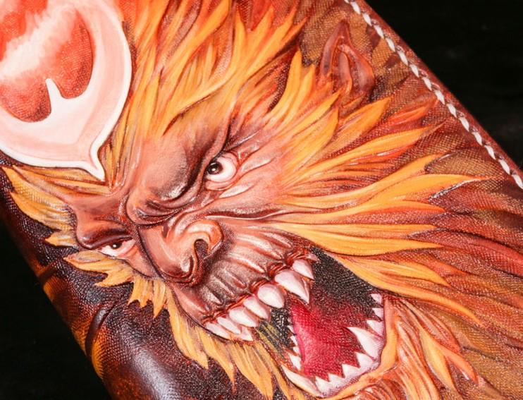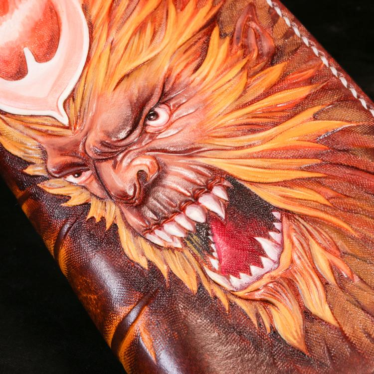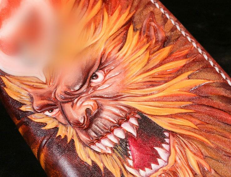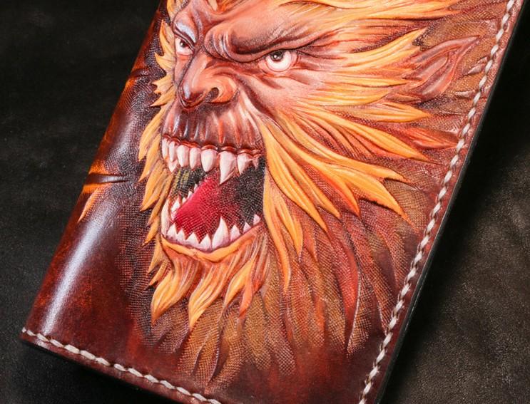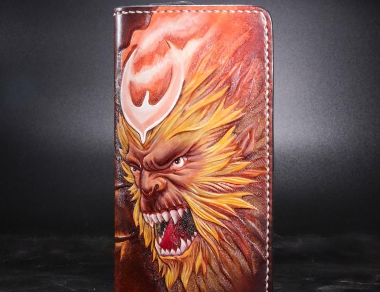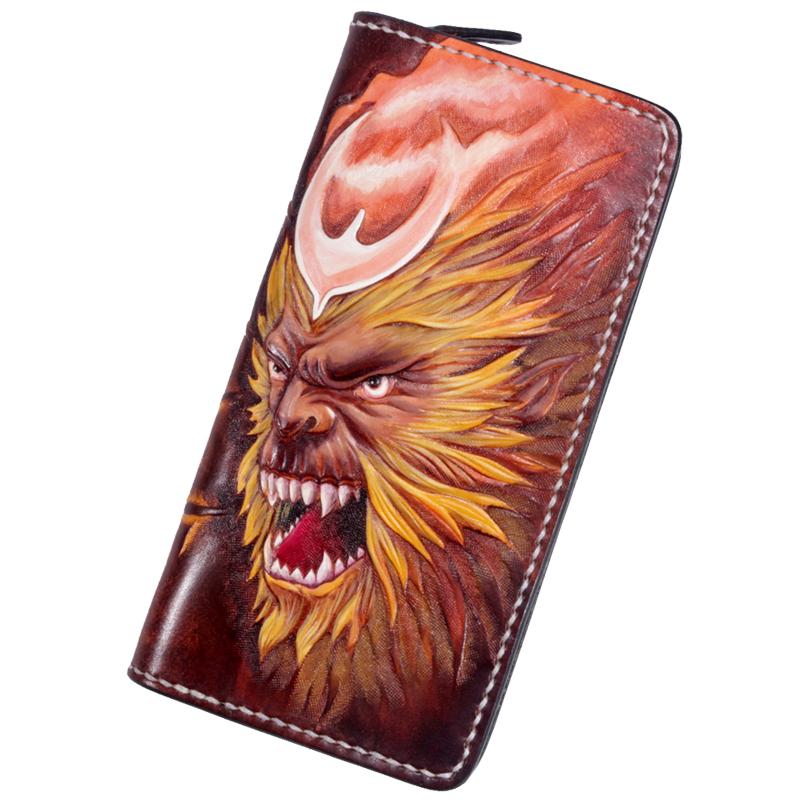 Design: Handmade Leather Men Tooled Monkey King Cool Leather Wallet Long Phone Wallets for Men
