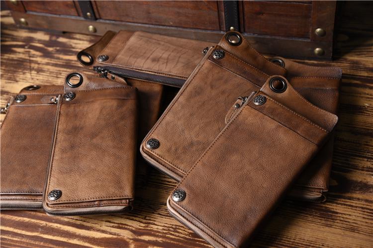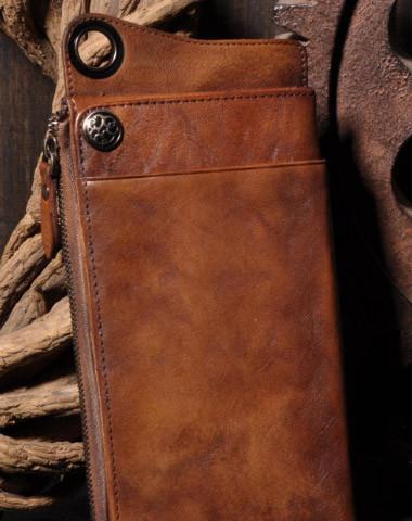 Leather biker trucker wallet leather chain men Brown Coffee long wallet