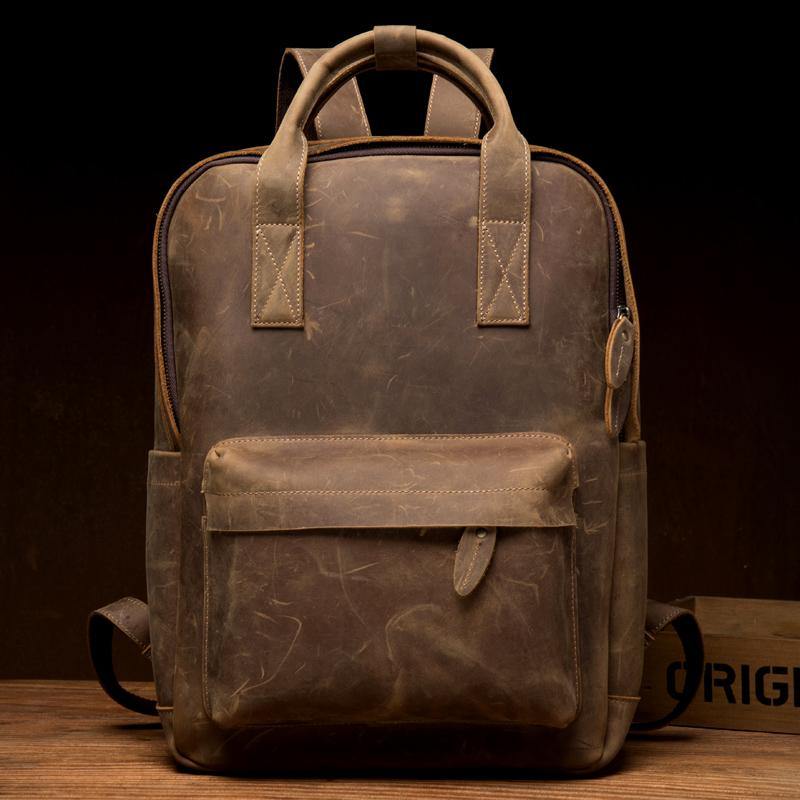 Cool Brown Mens Leather 15-inch Work Backpack Handbag Travel Backpack Computer Backpack for Men