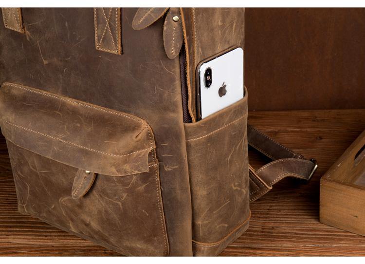 Design: Light Brown Casual Leather Mens 15-inch Travel Backpack Computer Backpack for Men