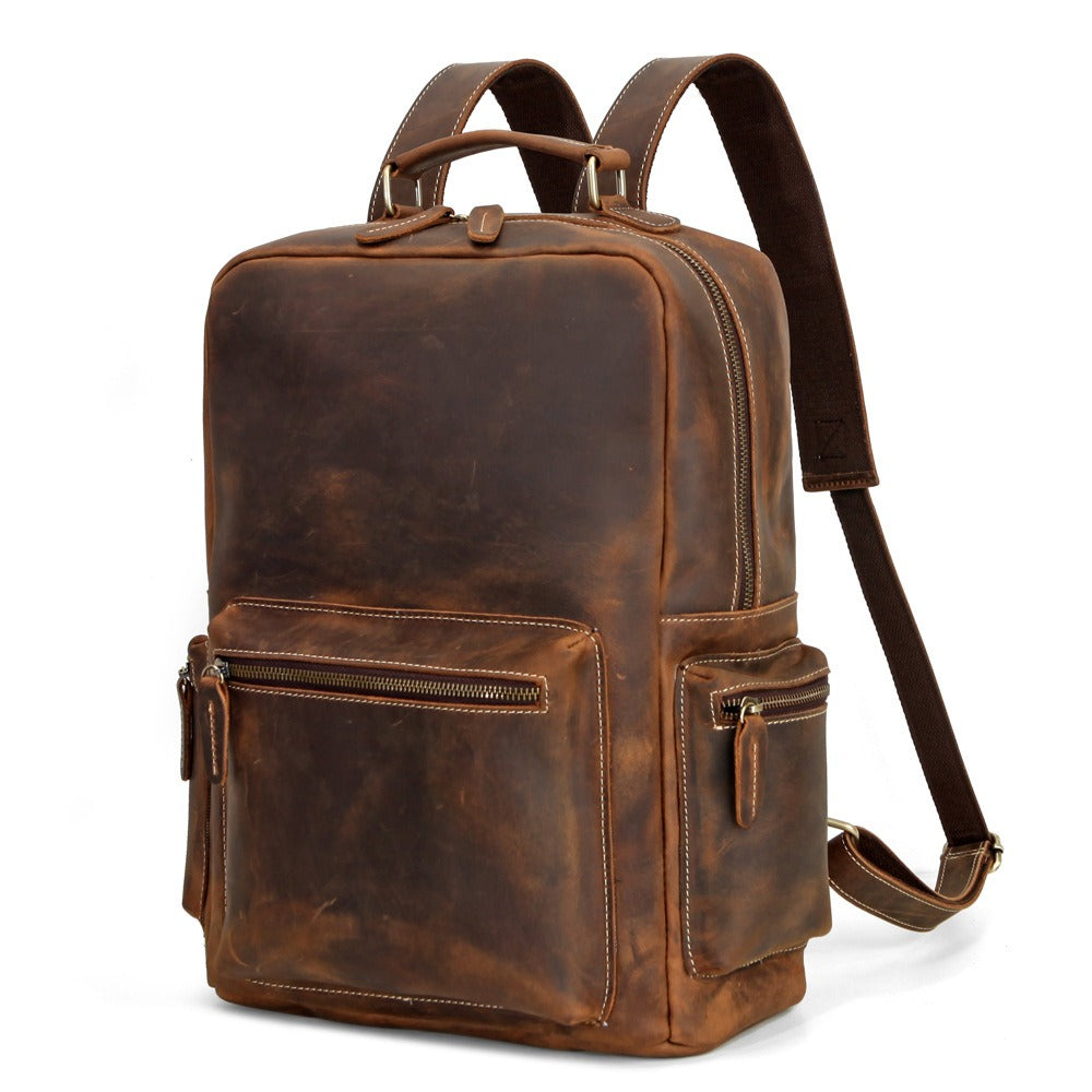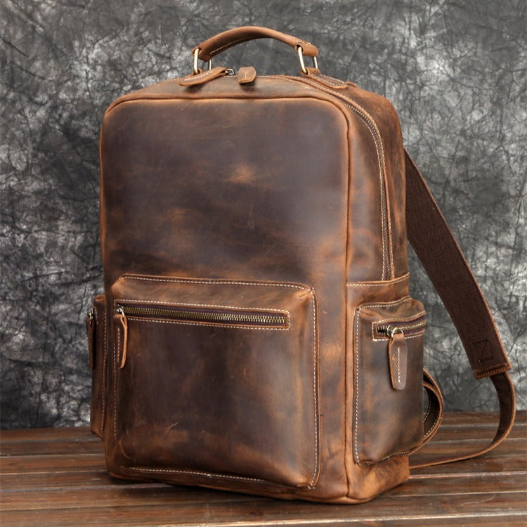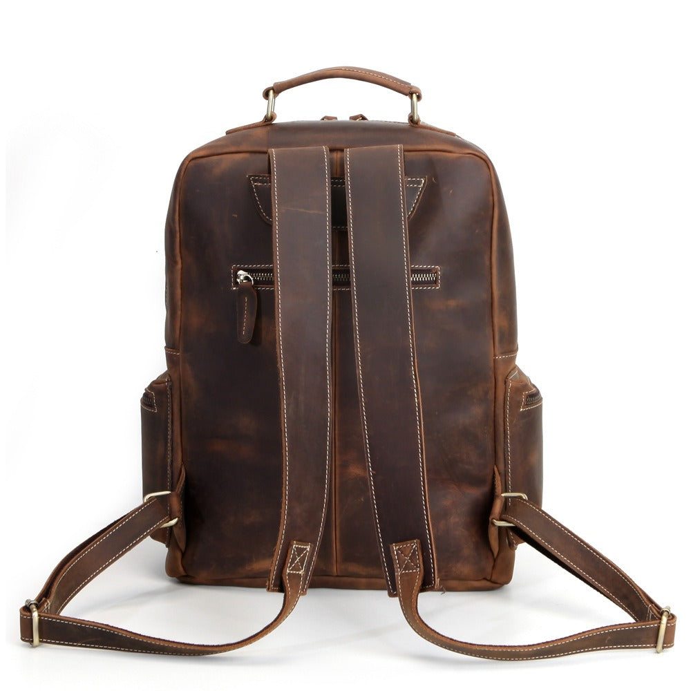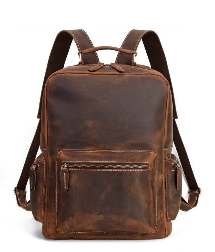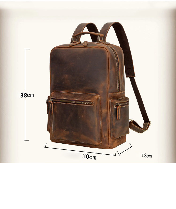 Style: Brown Leather Men's Travel Backpack School Backpack 14" Laptop Backpack For Men