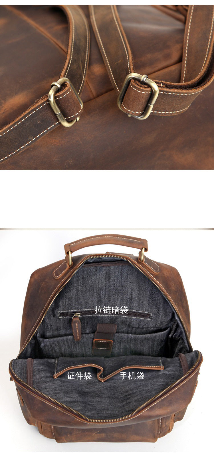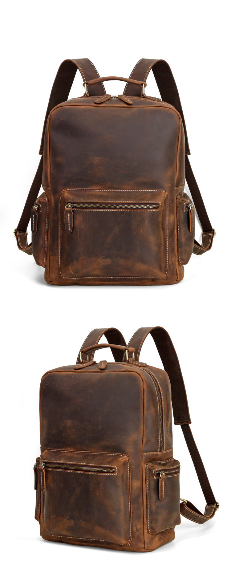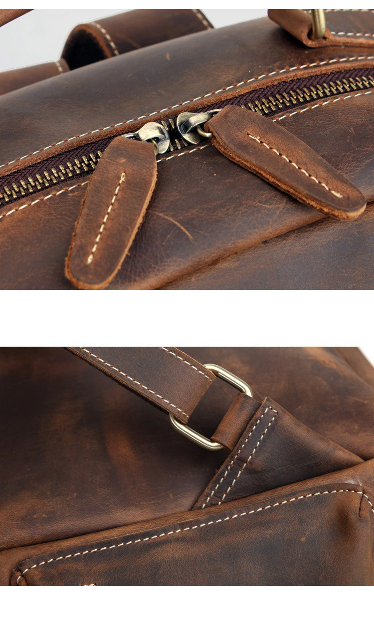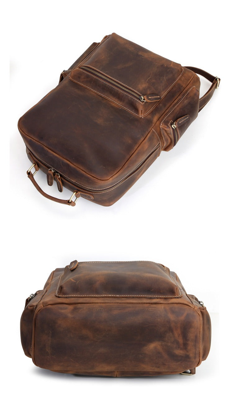 Design: Brown Leather Men's Travel Backpack School Backpack 14" Laptop Backpack For Men