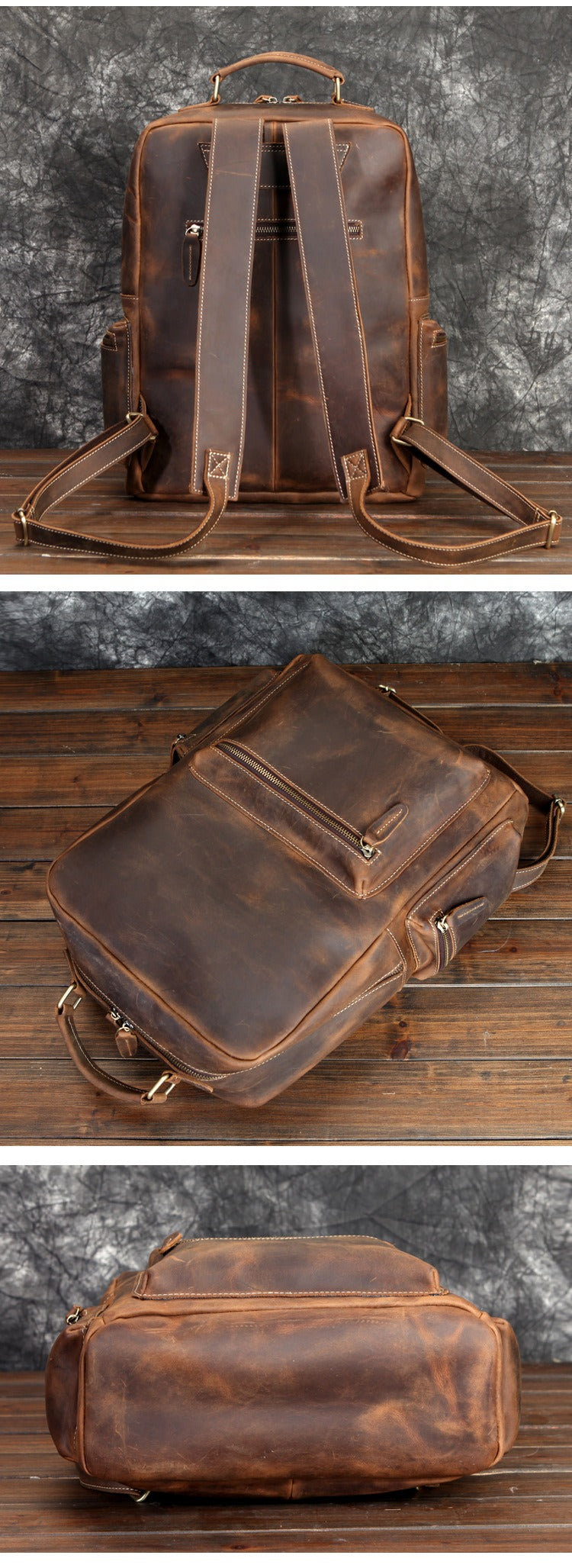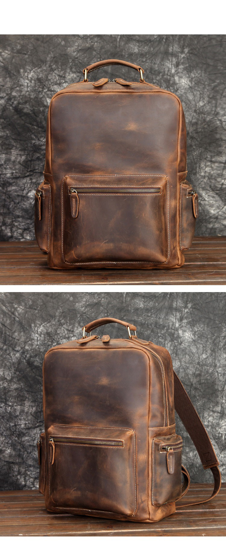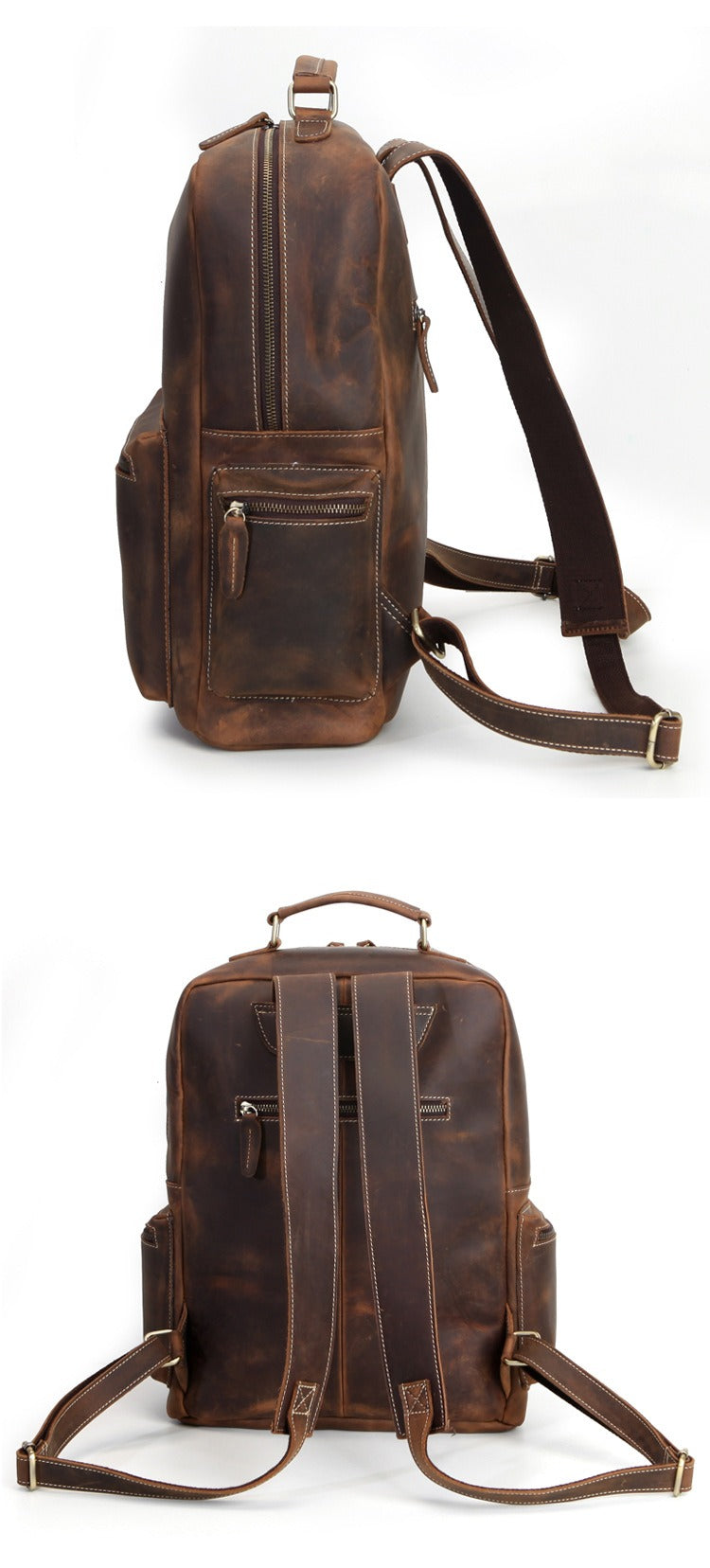 Design: Brown Leather Men's Travel Backpack School Backpack 14" Laptop Backpack For Men