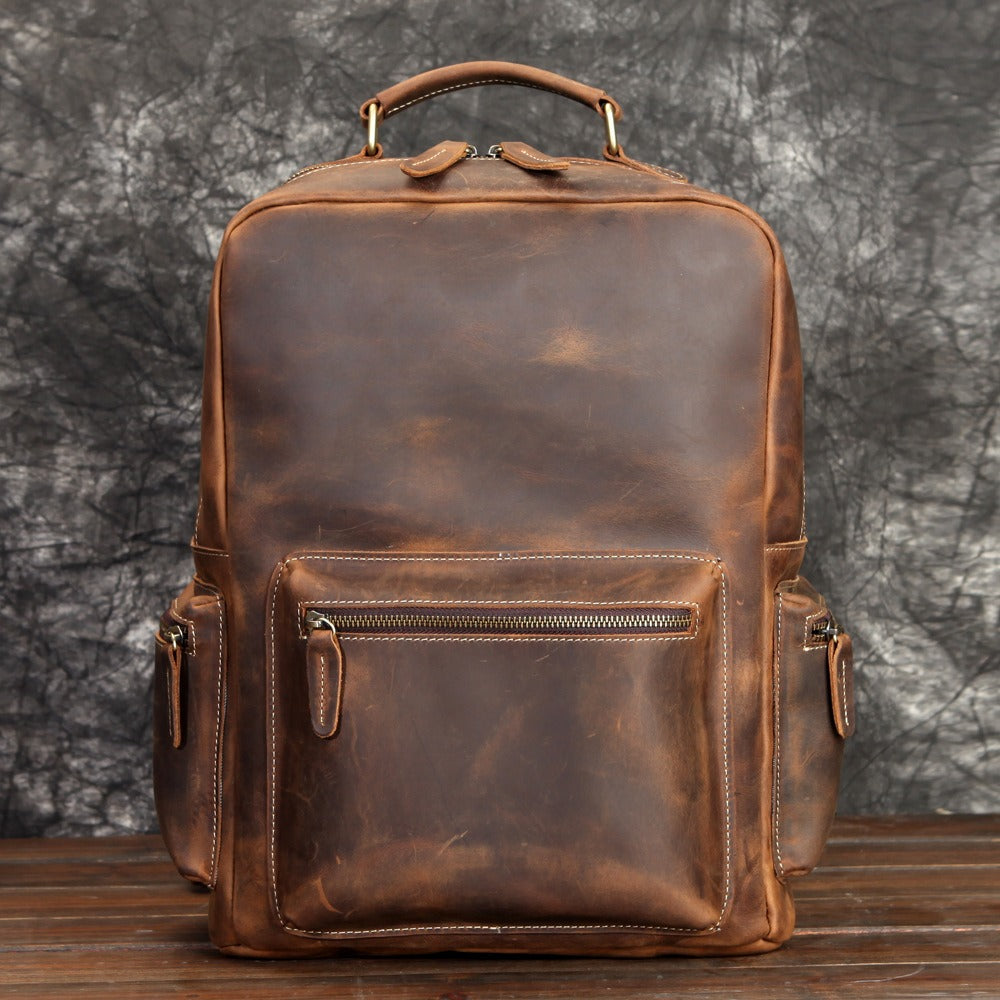 Brown Leather Men's Travel Backpack School Backpack 14¡®¡¯ Laptop Backpack For Men – 宇宙皮號