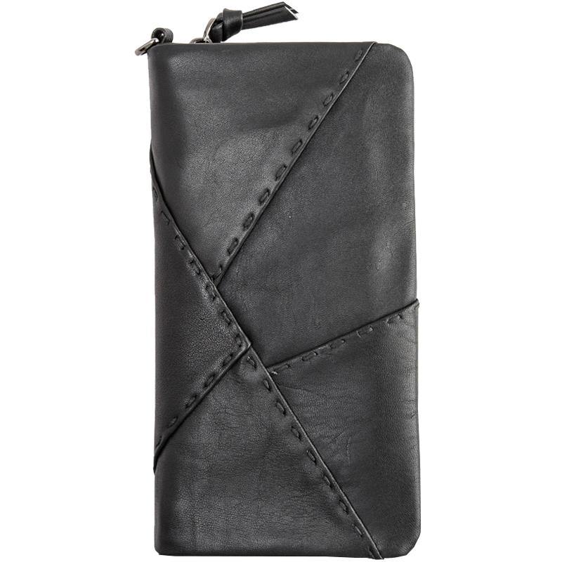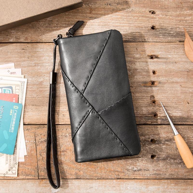 Style: Cool Black Leather Mens Slim Long Zipper Clutch Wallet Long Wallet Phone Bag Multifcard Wallet for Men