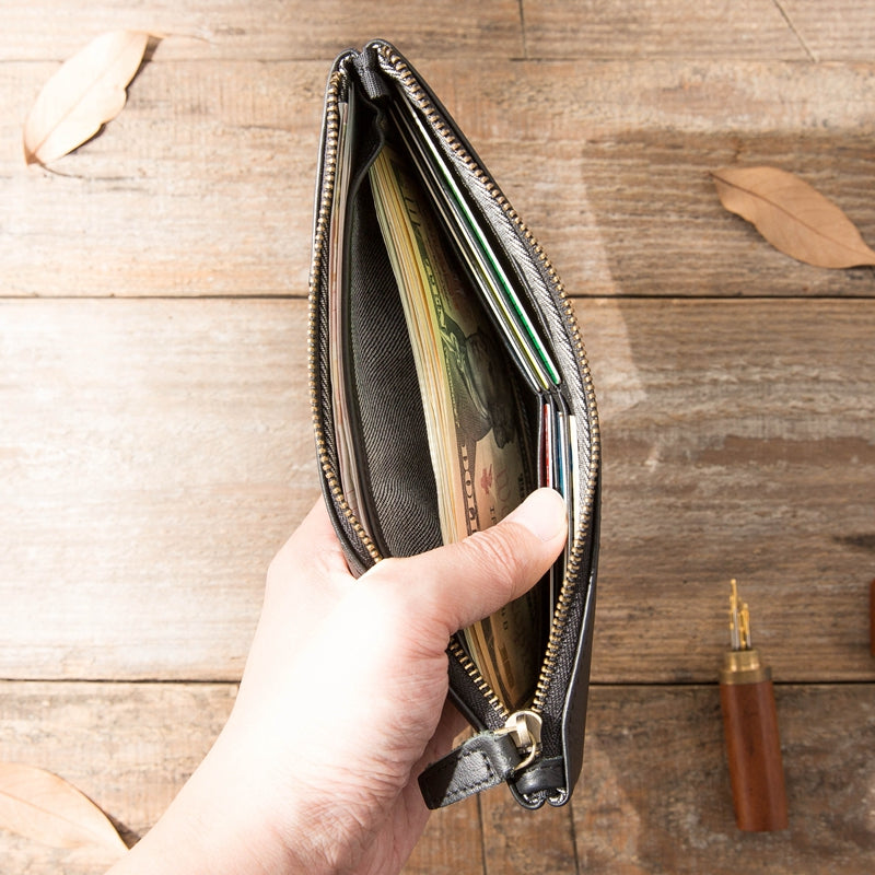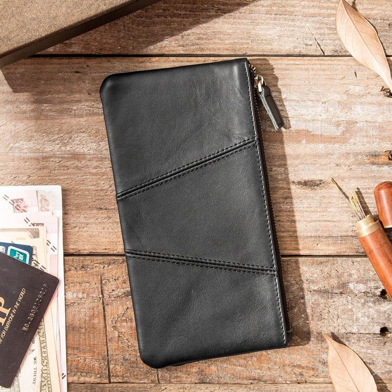Cool Black Leather Men's Slim Long Zipper Clutch Wallet Long Wallet Phone Bag for Men