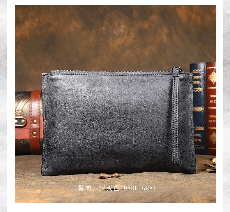 Handmade Leather Mens Brown Long Leather Wallet Wristlet Bag Envelope Bag Clutch Wallet for Men