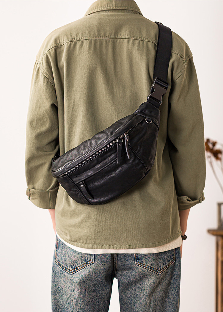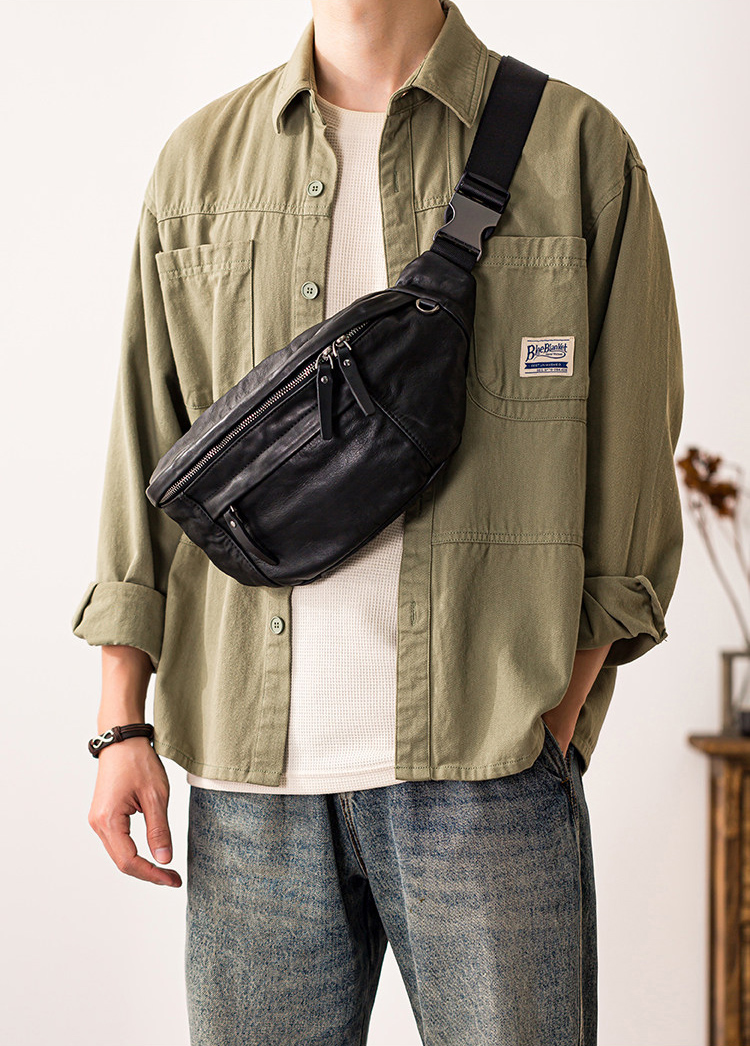 DEEPKEE真皮胸包男ins個性斜背百搭2401號