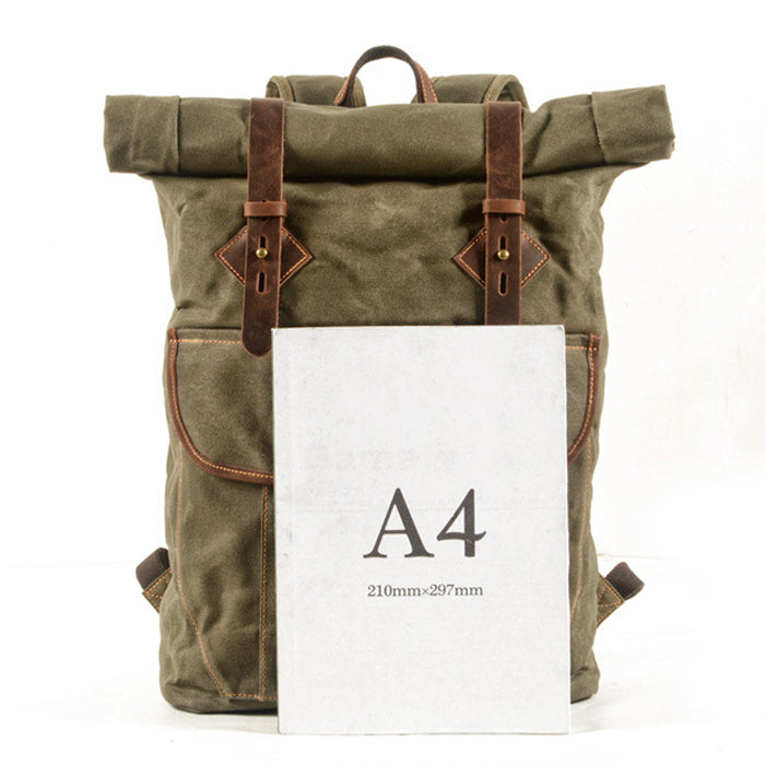 Gray Waxed Canvas Mens Rollup Backpack Canvas Travel Backpack Waterproof Hiking Backpack For Men – 宇宙皮號