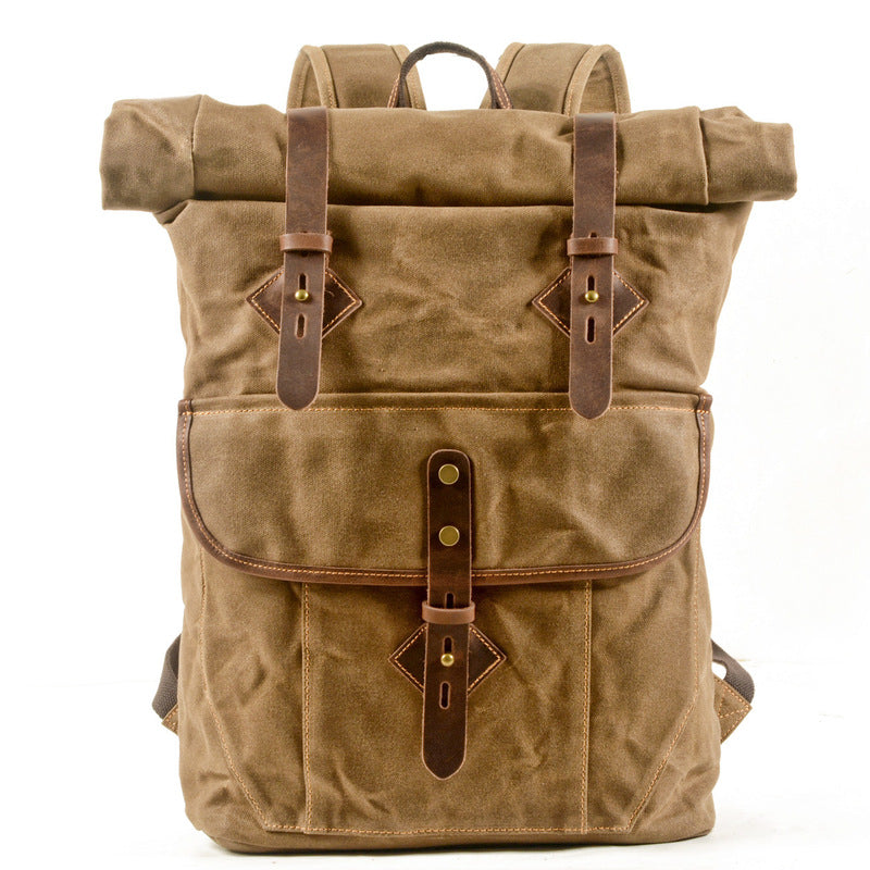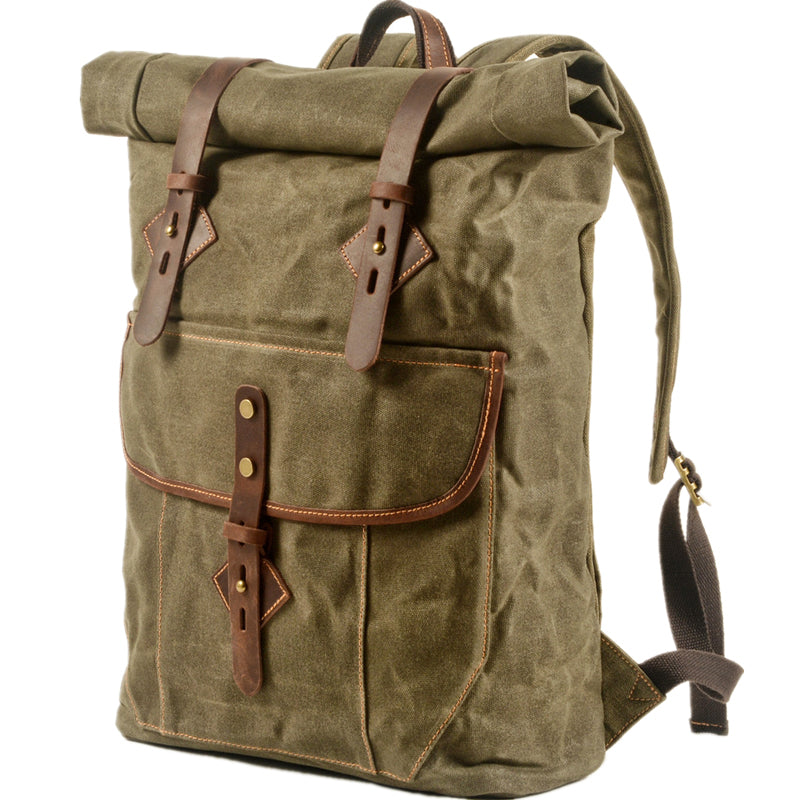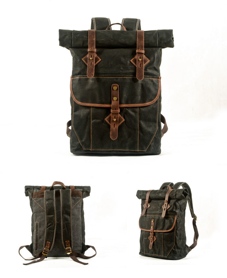 Design: Gray Waxed Canvas Mens Rollup Backpack Canvas Travel Backpack Waterproof Hiking Backpack For Men