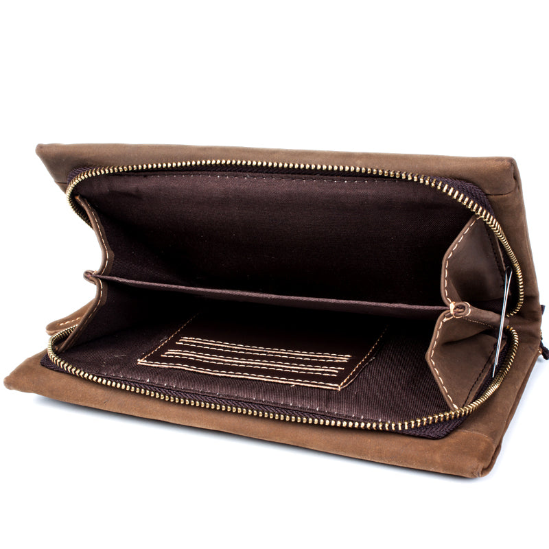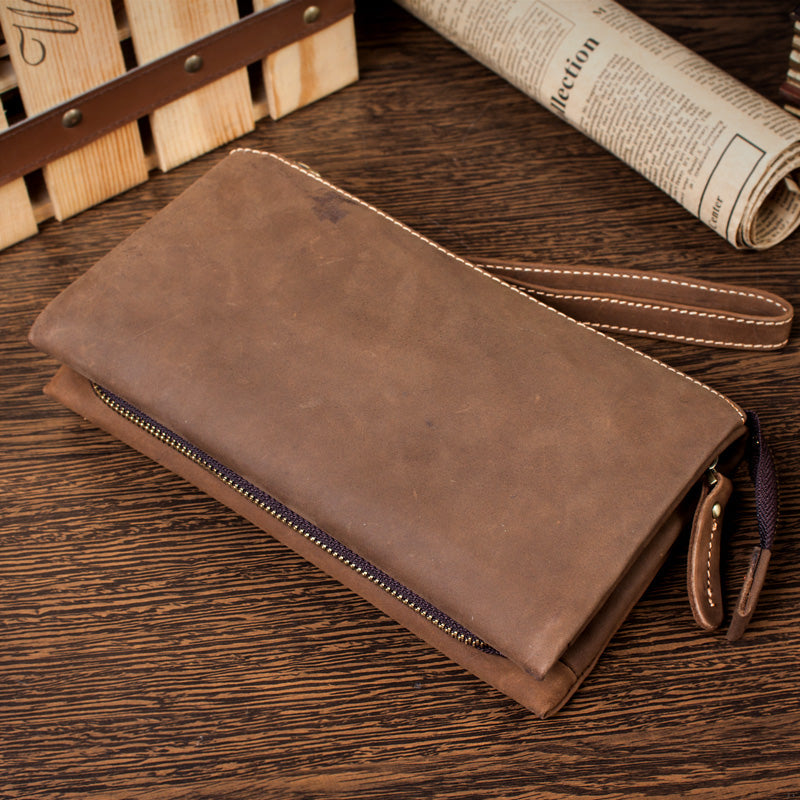 Light Brown Cool Mens long Wallet Wristlet Wallet Clutch Wallet Dark Brown Long Wallets for Men – 宇宙皮號