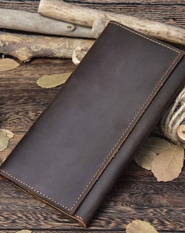 Vintage Leather Mens Long Wallet Bifold Coffee Long Wallet for Men – 宇宙皮號